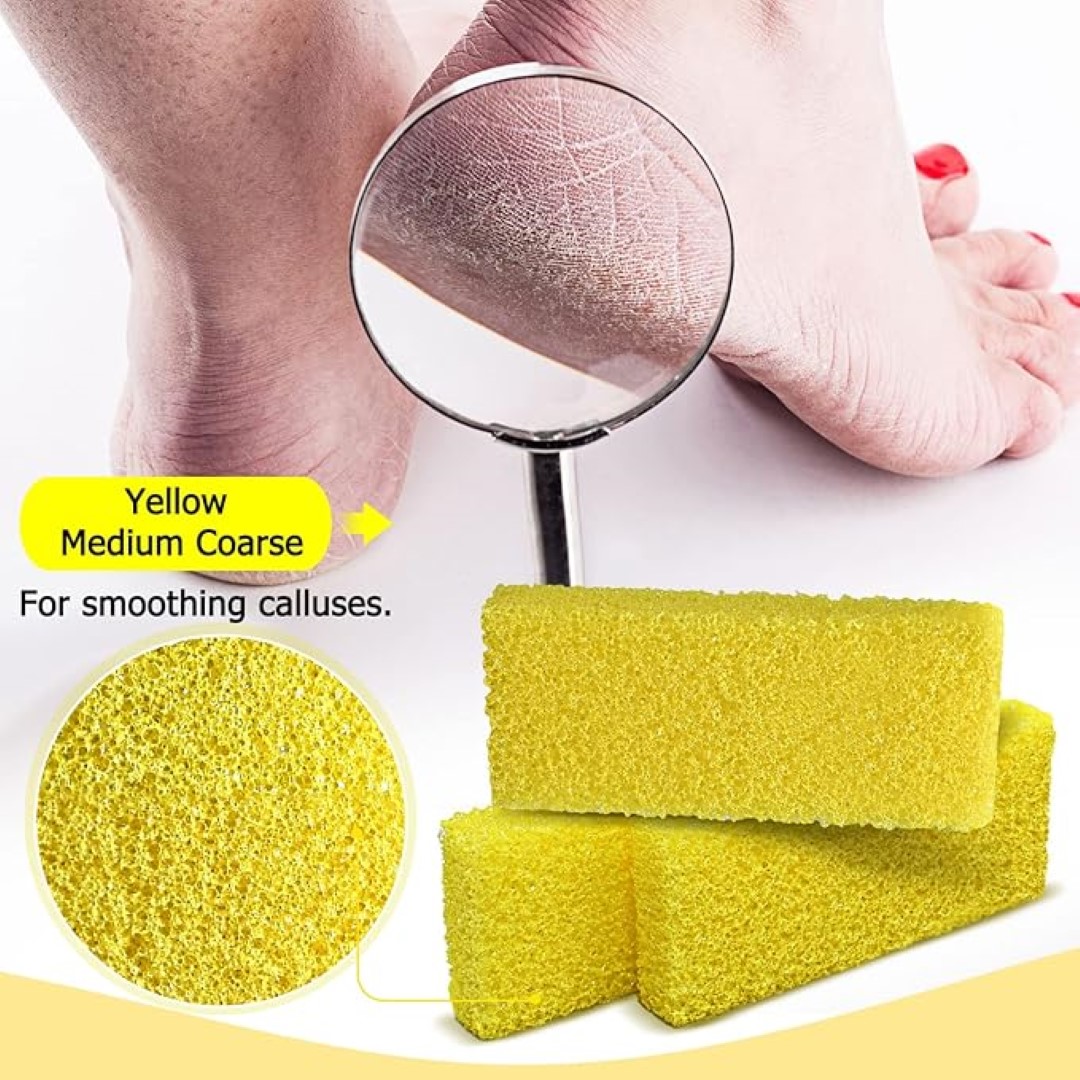 I absolutely love these yellow blocks for my stubborn calluses. The medium grit texture feels sturdy and coarse, reducing my heel roughness after one week. I am so happy with the clean, sanitary design and how my feet now feel silky against my soft bed sheets.