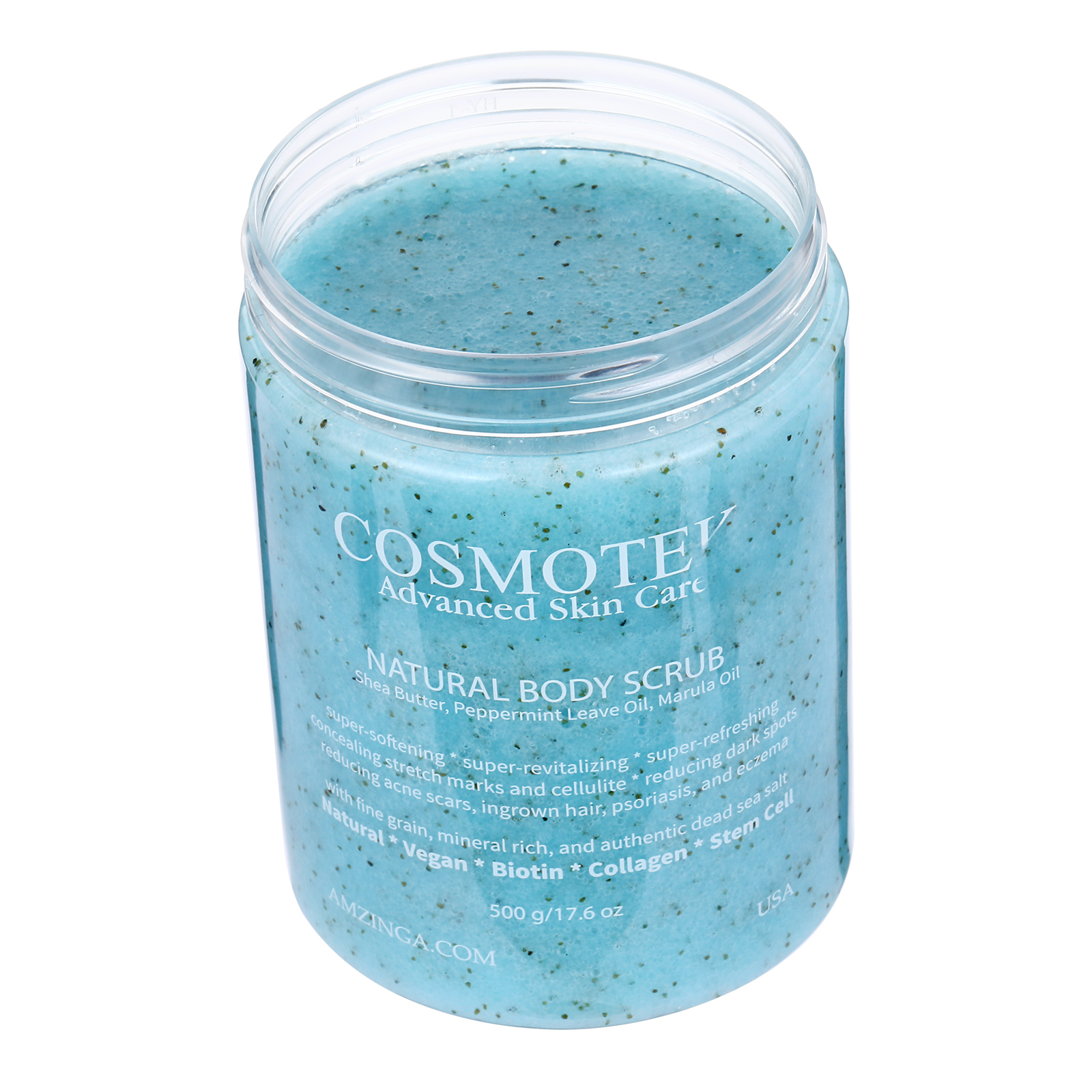 What it is: Cosmotek peppermint body scrub is a highly moisturizing blend of Shea butter, peppermint oil, and marula oil that softens and revitalizes your skin leaving you with a refreshing luscious scent of peppermint.