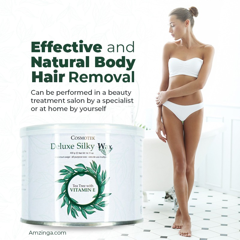 Deluxe Silky Wax is your go-to solution for all-purpose hair removal, enriched with the natural goodness of Tea Tree and Vitamin E. This premium hot wax is designed to deliver smooth, long-lasting results for your brows, bikini line, and body. Its natural formula ensures gentle care while effectively removing unwanted hair, leaving your skin feeling silky smooth and rejuvenated.