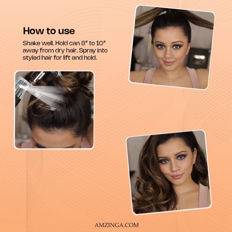 1. Hold can 8–12 inches from dry hair 2. Spray evenly to set finished style 3. For added volume, spray at roots and lift with fingers or comb 4. Layer for stronger hold or brush out for a soft, touchable finish
