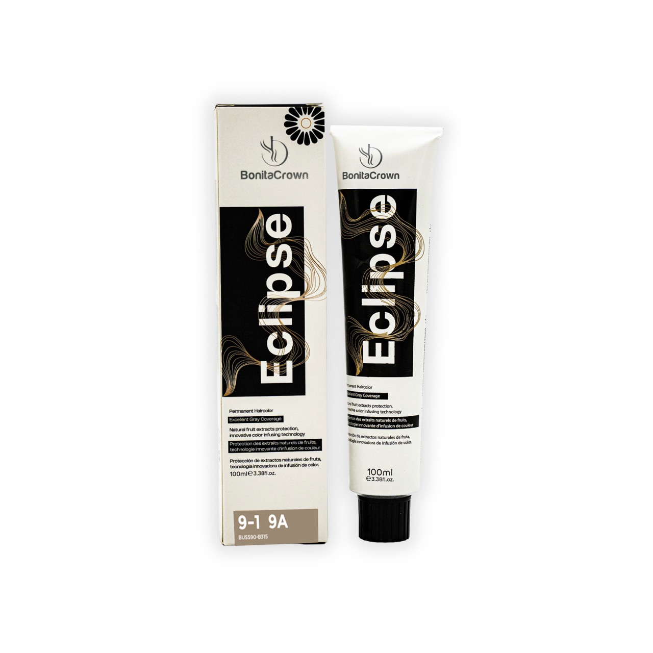 Bonita Crown Eclipse Permanent Hair Color in Very Light Ash Blonde (9A) delivers a sophisticated, cool-toned blonde with professional, salon-quality results. Designed for full gray coverage, this advanced formula ensures even, long-lasting color while maintaining the hair’s health and vibrancy. Infused with natural fruit extracts, it deeply nourishes each strand, leaving hair silky, radiant, and protected against dryness and damage. This shade is perfect for those who desire a refined, light blonde with an elegant ash undertone that neutralizes brassiness for a flawless finish.