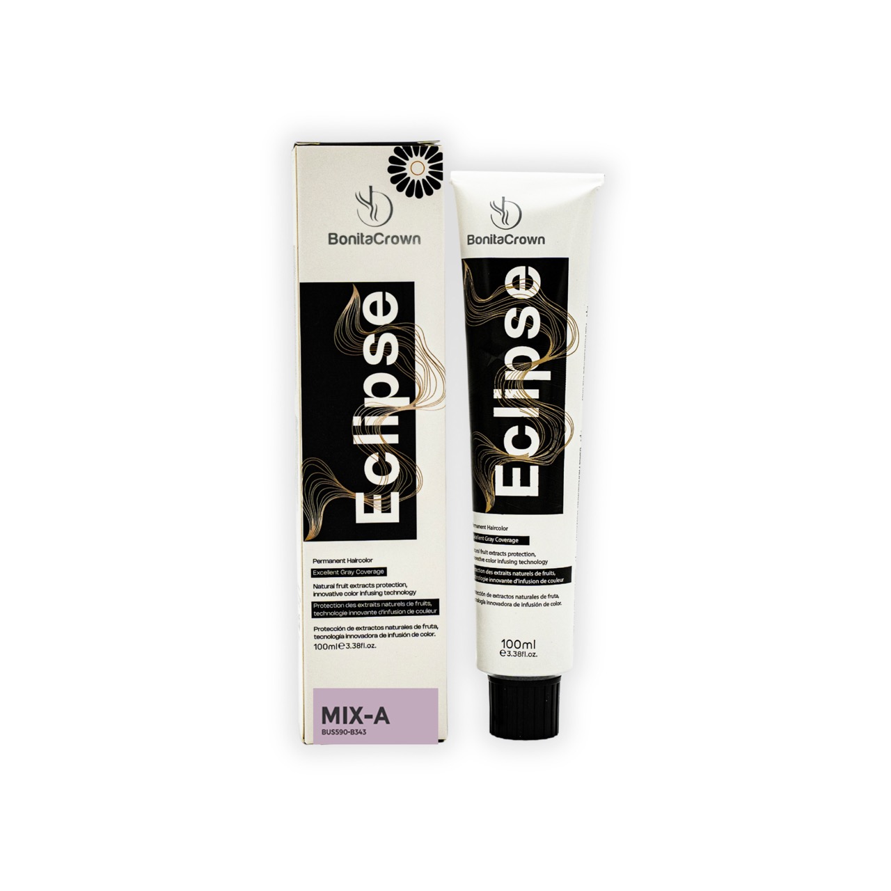 MIX-A Ash Intensifier Bonita Crown Eclipse Permanent Hair Color offers salon-quality results with full gray coverage. Infused with natural fruit extracts, it delivers vibrant, long-lasting color while maintaining the health and shine of your hair. This rich formula is designed for those seeking cool, ash-toned hues, ensuring a flawless, natural finish every time. Perfect for professional use, it leaves hair feeling nourished and radiant after each application.