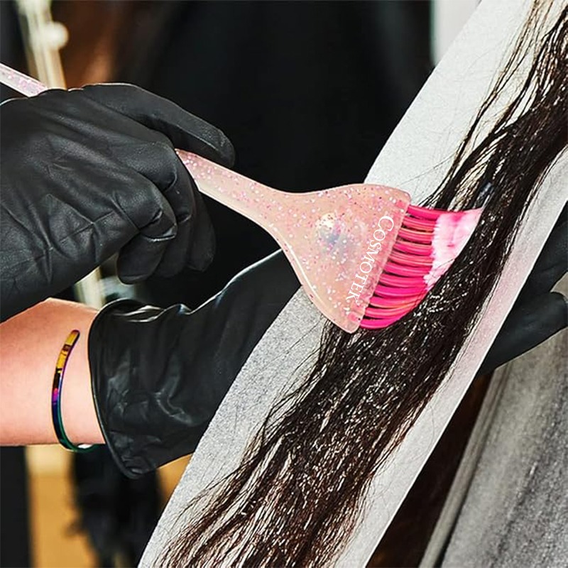 The Hair Color Brush is designed for professional hair stylists and at-home users who want precision and style in every application. Each brush features a glitter handle that adds a touch of glamour to your toolkit while ensuring a comfortable grip. The soft feather bristles distribute dye smoothly and evenly, making them perfect for hair coloring, highlighting, balayage, and tinting. With their lightweight build and durable design, these brushes are an essential addition for salons and DIY hair enthusiasts alike.