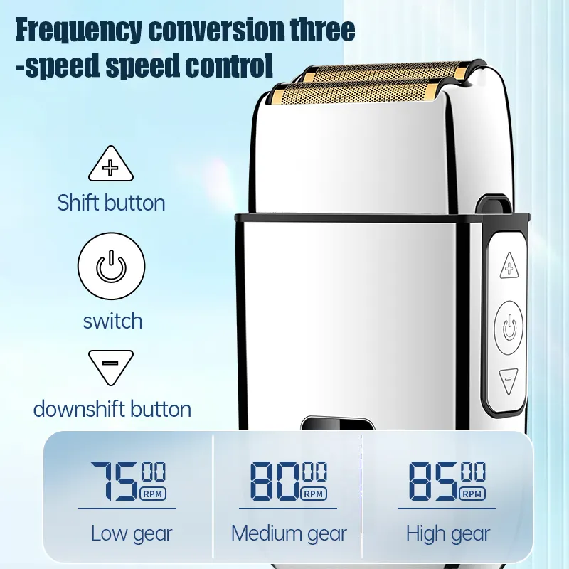 2. High-Speed Motor with Adjustable Speed Settings: Powered by a robust motor that reaches up to 8500 RPM, this razor offers three adjustable speeds (7500/8000/8500 RPM) for customized grooming. The low-noise motor provides a quiet shave experience, and the powerful performance makes this razor up to four times more efficient than typical men’s shavers on the market.