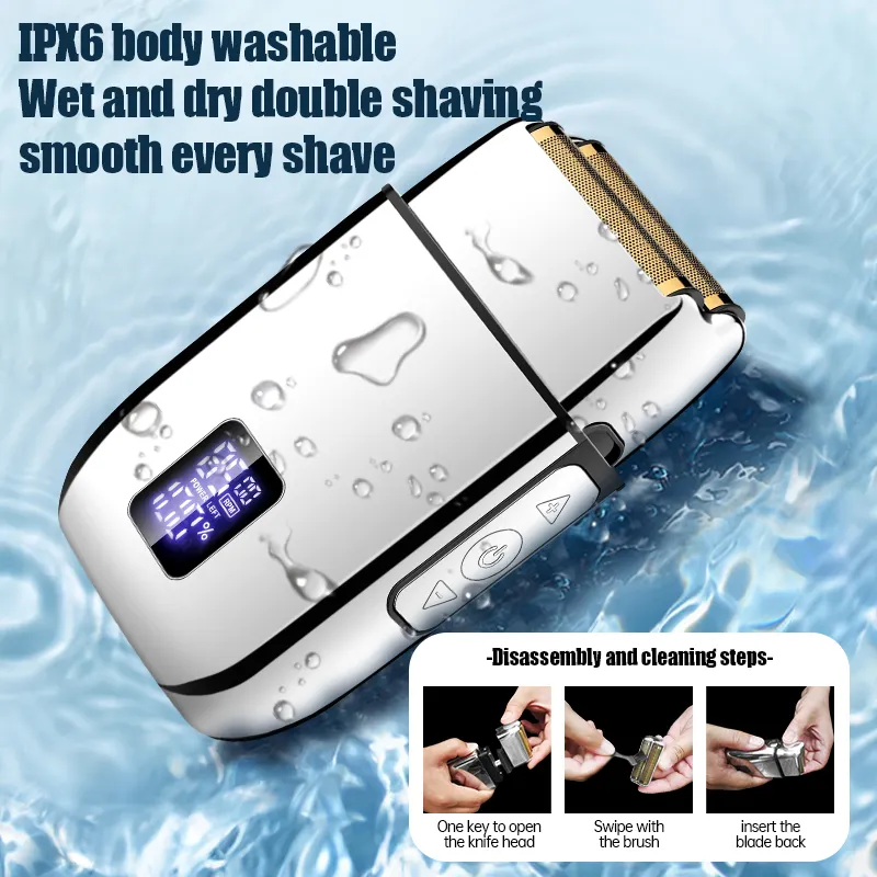 4. Easy to Clean with Waterproof Design: Featuring a detachable foil head and rinseable construction, this razor is easy to maintain. With an IPX7 waterproof design, it’s suitable for wet or dry use. Plus, it includes a 3-second activation travel lock, making it a convenient, hygienic choice for travel and business trips.