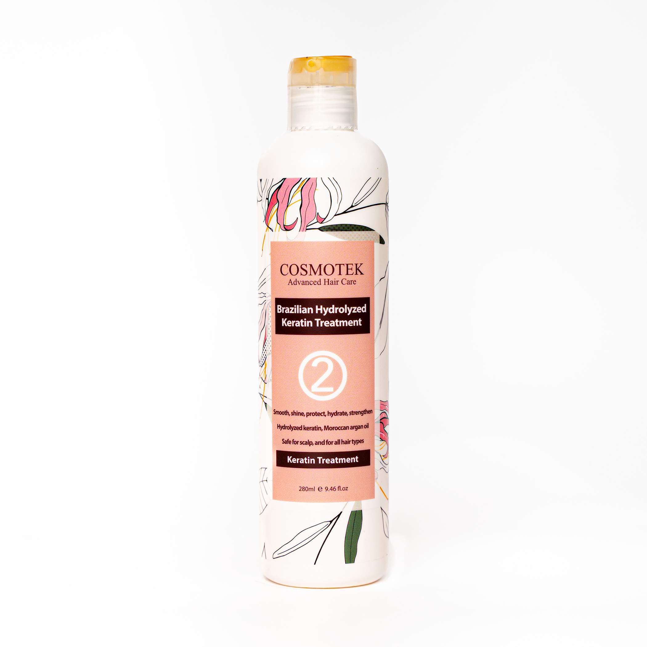 Step 2 – Keratin Treatment enriched with Hydrolyzed keratin, Moroccan Argan oil that smooths, shines, protects, hydrates, and strengthens the hair.