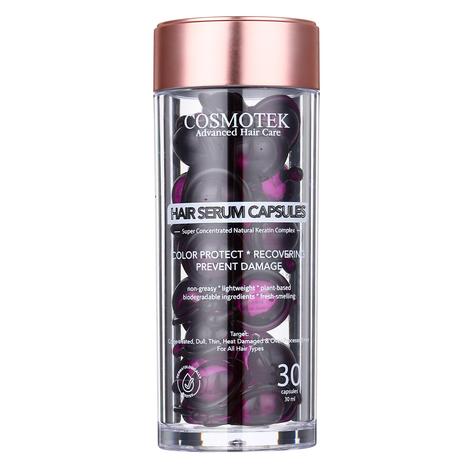 Gift your hair with Color Protection and Recovery that minimizes dull and over processed hair. Strengthen it with our super Concentrated Natural Keratin Complex brought to you by COSMOTEK. This hair serum will be a game changer for Color-treated dull thin heat damaged and over processed hair that need extra care. Use Daily