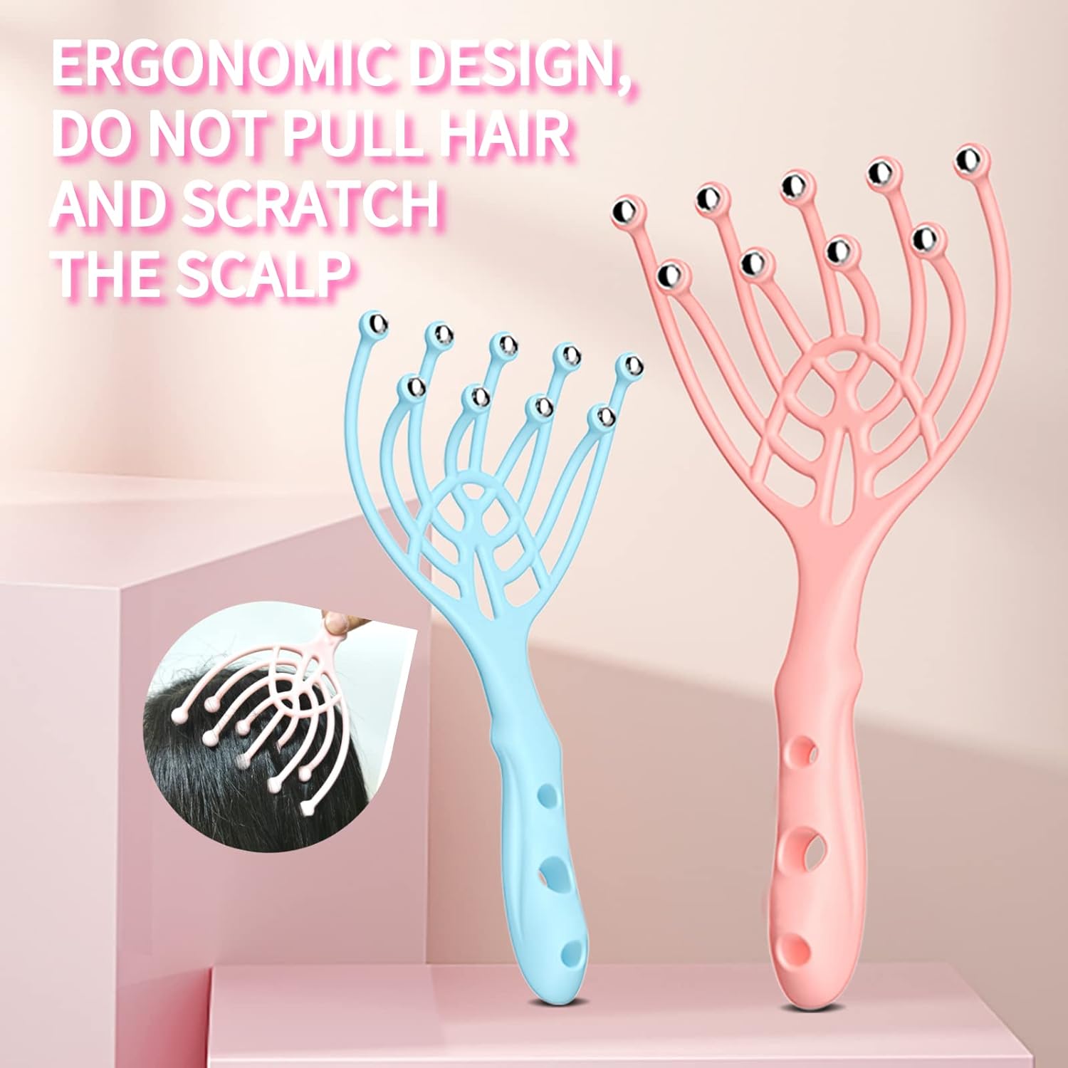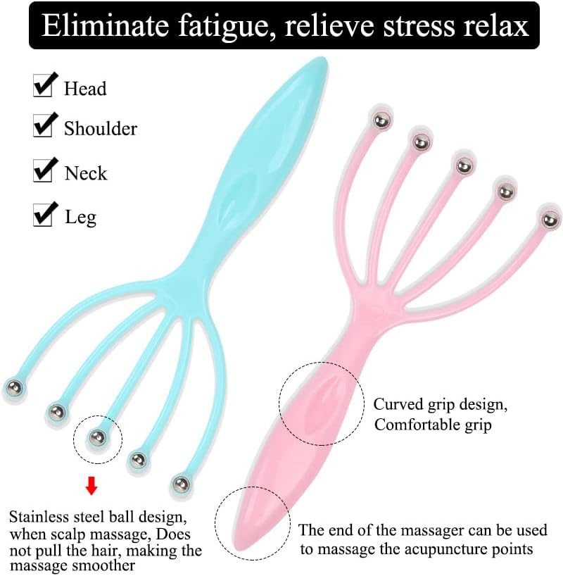 Scalp Massager, Handheld SPA Head Massager, 9 Claws Massage for Hair Growth, Deep Stress Relax, Office Home SPA Parents Gift Pink+Blue, 2 Pack
