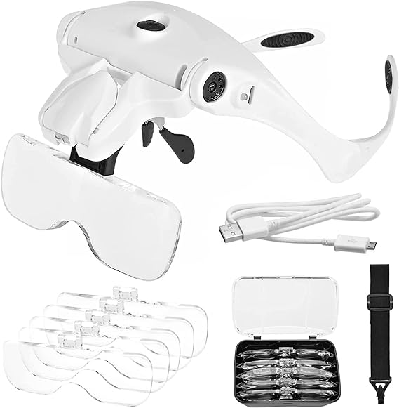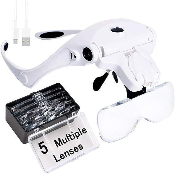 Five Interchangeable Lenses: Switch between 5 optical lenses using a simple click and release system. Magnification power of the head mount magnifier: 1.2X, 1.8X, 2.5X, 3.5X, 4.5X. Scratch-resistant acrylic reduces weight.