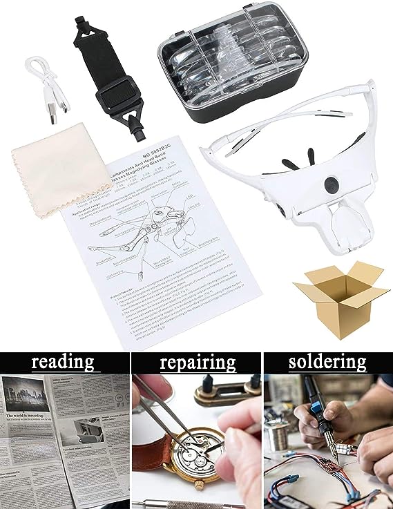 Versatile Usage: Upgrade headband design with elastic belt for more comfortable use, effectively prevent falling. This magnifying glasses is ideal for close up work like Jewelry appraisal, watch repair, arts and crafts, painting, beauty and hobby.