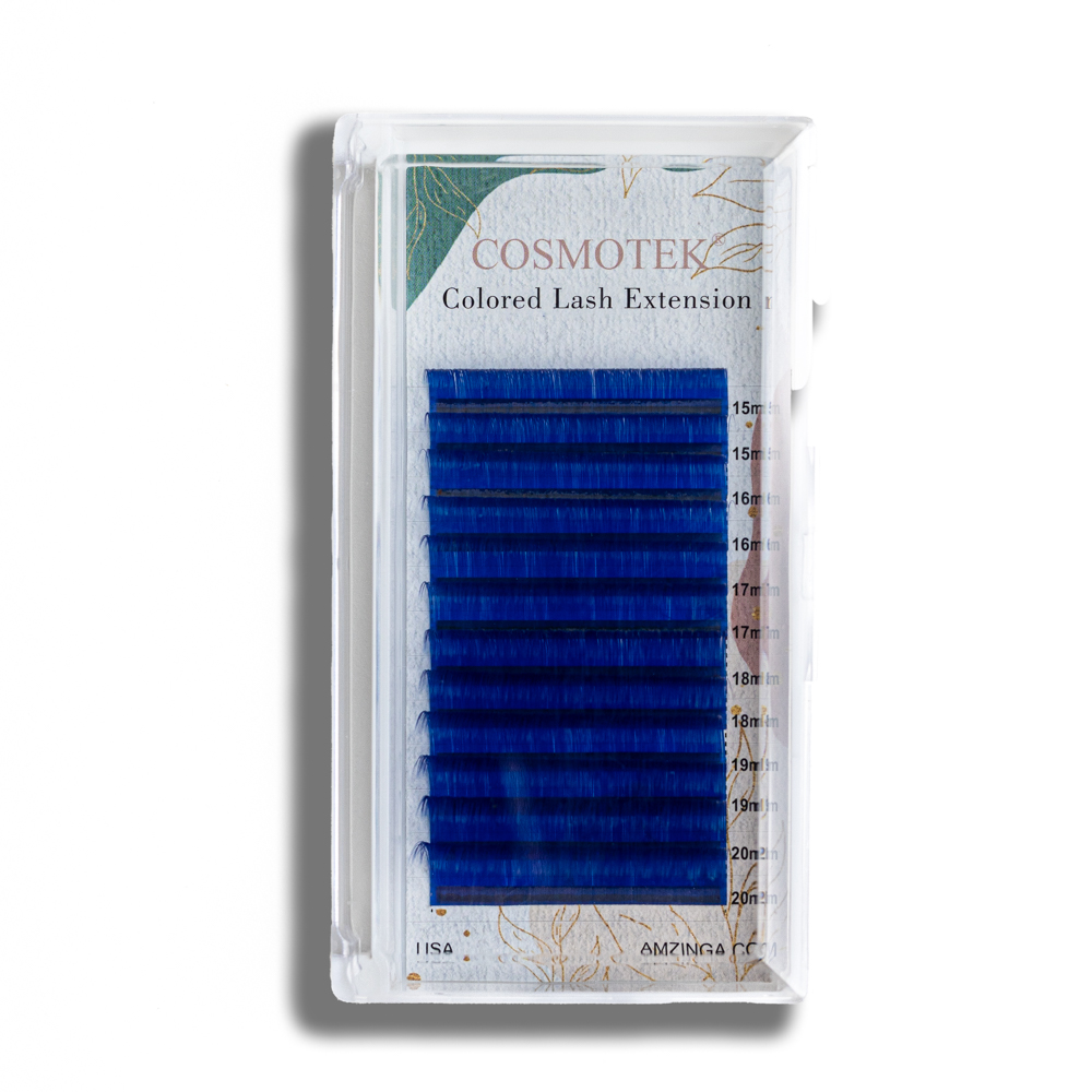 Cosmotek Colored eyelash extension comes in Blue Soft Mint, Rainbow, Green, Hard pink, Orange, Pink, Purple, and Yellow colors.