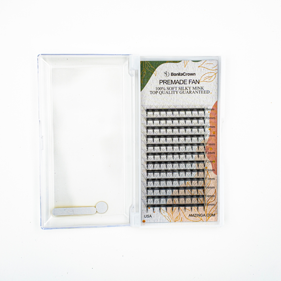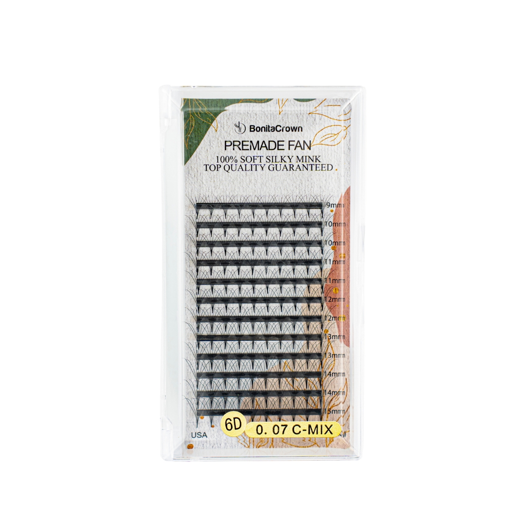 BonitaCrown’s 6D Premade Fans Eyelash Extensions are designed to provide stunning volume with minimal effort. These high-quality premade lash fans feature 6D clusters and come in a variety of mixed lengths from 8mm to 15mm, allowing you to achieve a full, customized look.