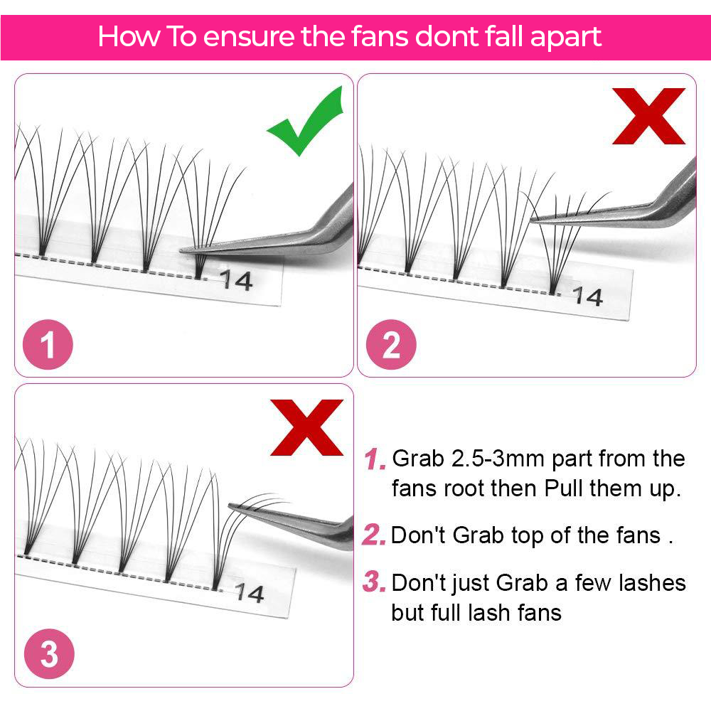 2. Easy Application & No Residue: Designed for seamless application, these premade volume fans have no glue residue at the base. Whether you’re creating natural, hybrid, or wispy lash sets, these fans ensure a clean, polished finish every time.