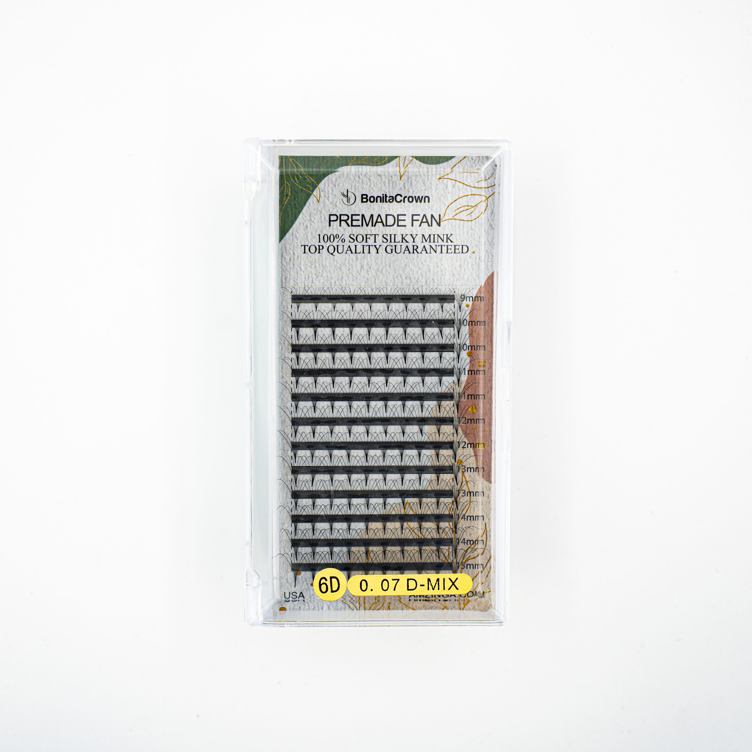 This 6D premade lash fans are crafted to deliver a voluminous, natural-looking finish. The mixed-length range of 8-15mm offers versatility for creating customizable styles, from subtle enhancements to dramatic looks. It’s features a thin, seamless base, these fans ensure easy application and long-lasting results. Perfect for professional lash technicians who value efficiency without compromising quality.