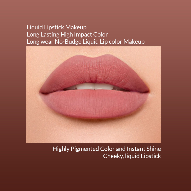 Our Liquid Lipstick Makeup in the shade Cheeky (#58) has a high-impact, long-lasting liquid lip color and offers a no-budge formula that stays vibrant and fresh all day long. It’s deliver an intense burst of color and an instant, irresistible shine. This liquid lipstick is designed to keep your lips looking flawless and feeling comfortable from morning till night.