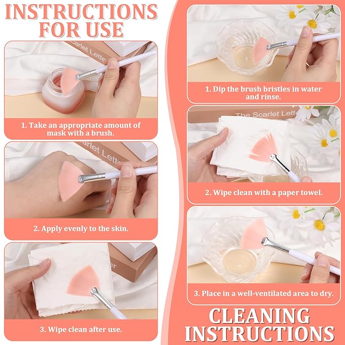 • Wide range of applications: the fan brushes may be used to apply the mud, powder mud, clay mud, DIY face mud, facial serums, body lotion, body oil, and other skin-care products, and are soft and comfortable to use.