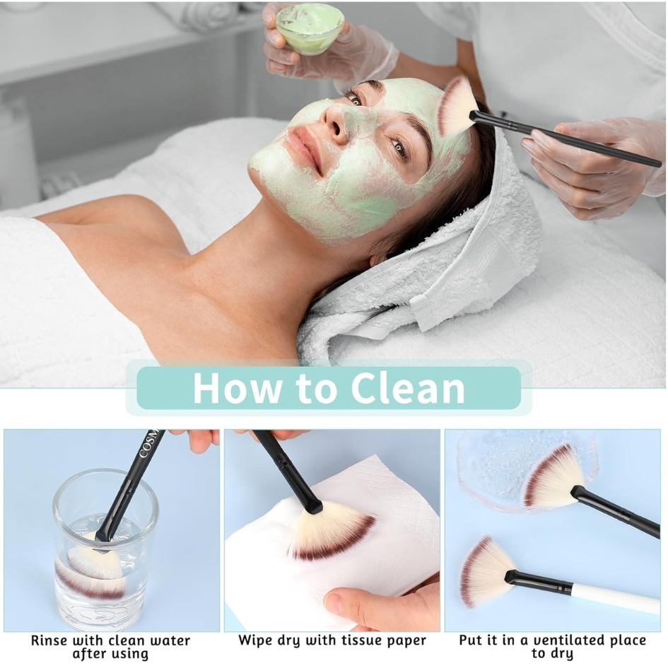 1. 4 PCS Set: Includes four facial fan brushes for multiple uses and hygienic application.