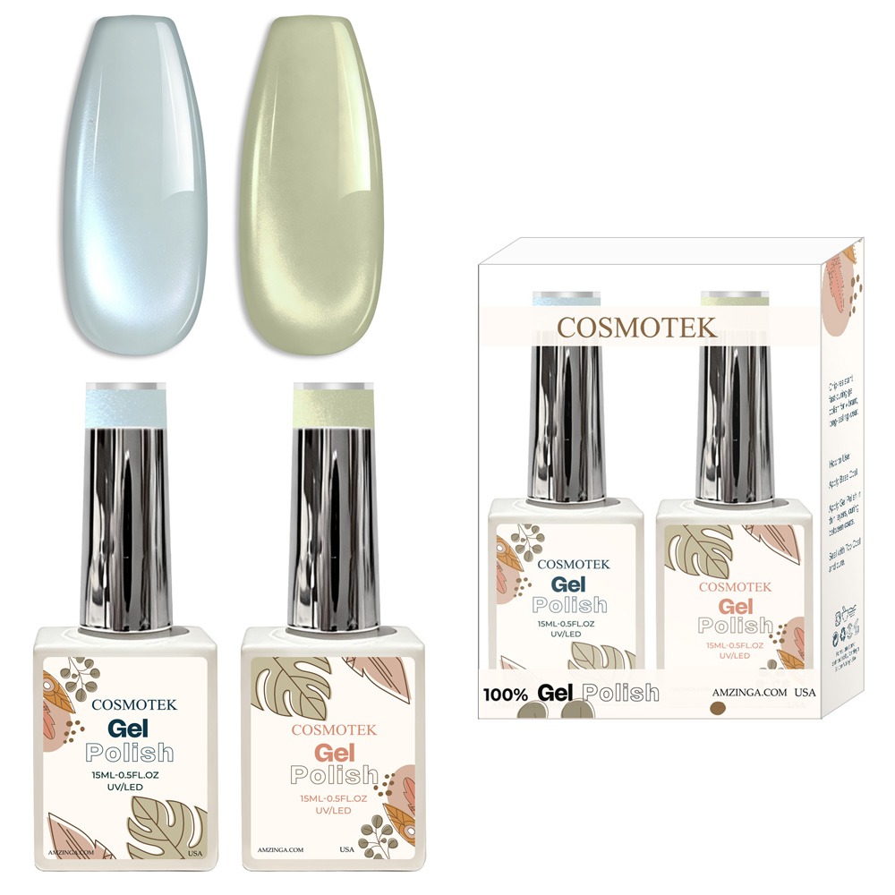 Cosmotek Cat Eye Duo Gel Set: Arctic Sky & Pistachio Cosmotek Cat Eye Duo Gel Set – CTK-D07 – Premium Magnetic Gel Polish with Light Blue & Pale Mint Shimmer (2 x 15ml)