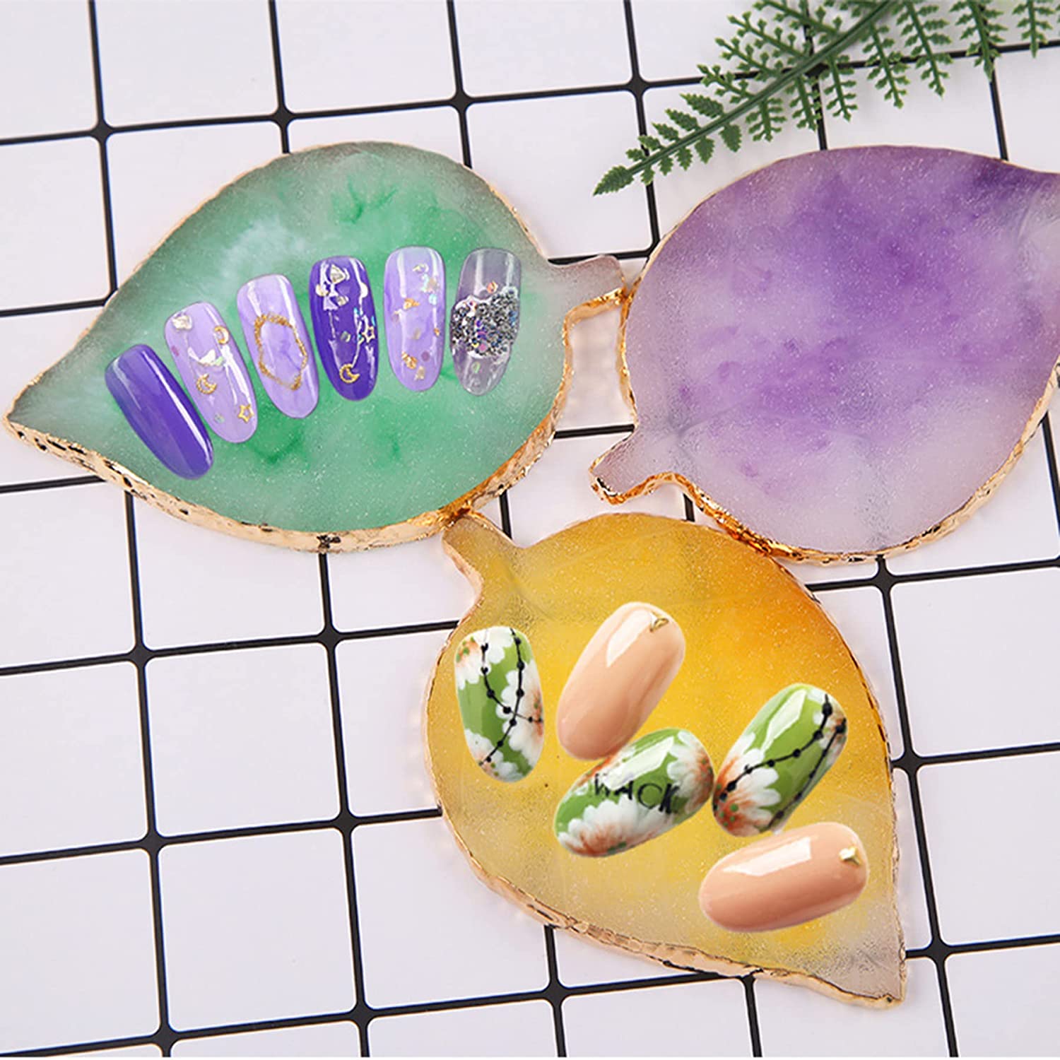 Leaf-shaped resin palette with a golden edge for you to make your own nail design styles, suitable to hold many colors and pigments you want to mix, enough to meet your basic needs.