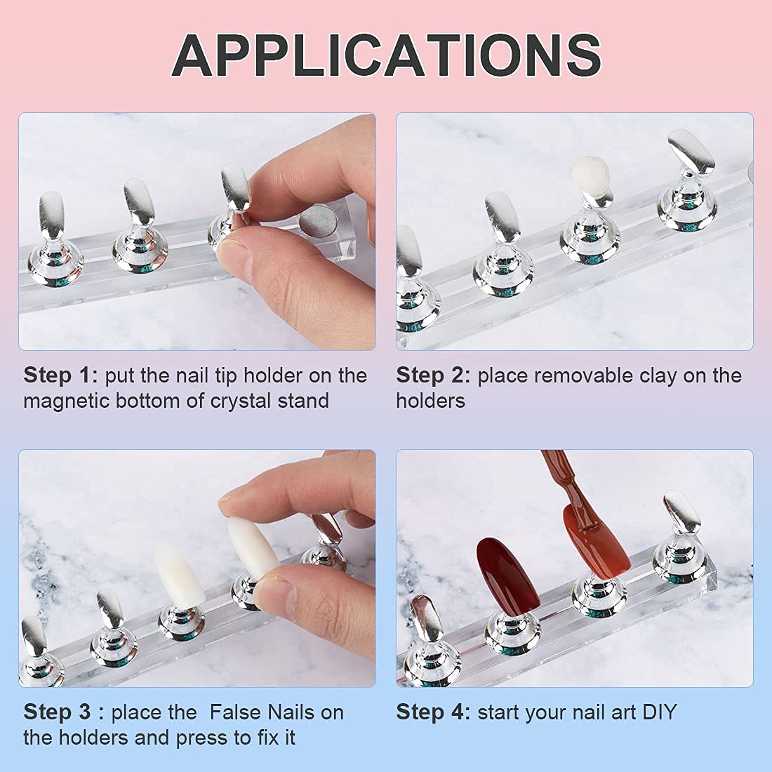 High Quality Material: Our nail tip practice stands are madr of high-quality acrylic plastic, magnets, and acrylic material.