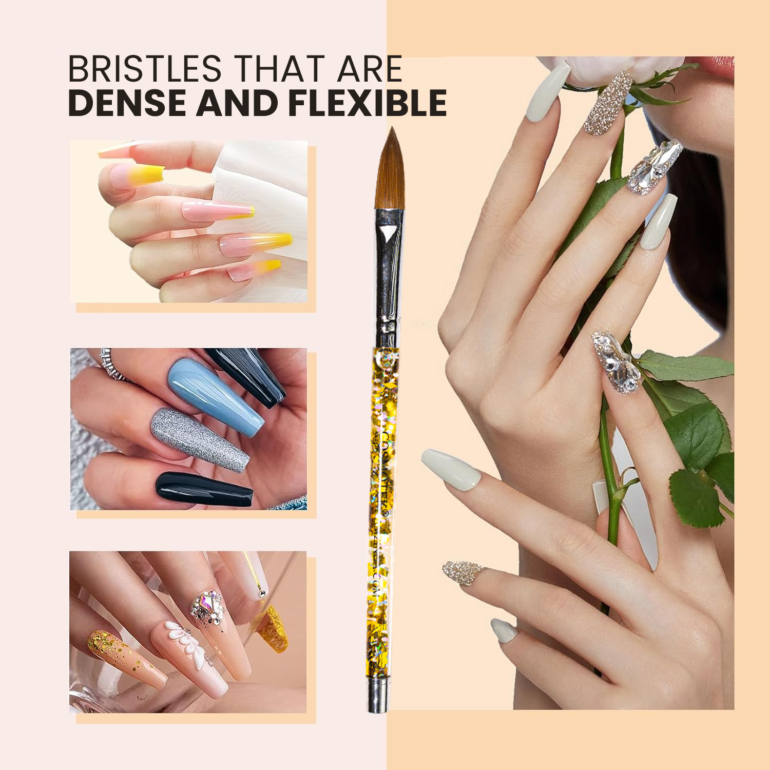 Design: Acrylic Nail Brush with a Golden Glitter Handle