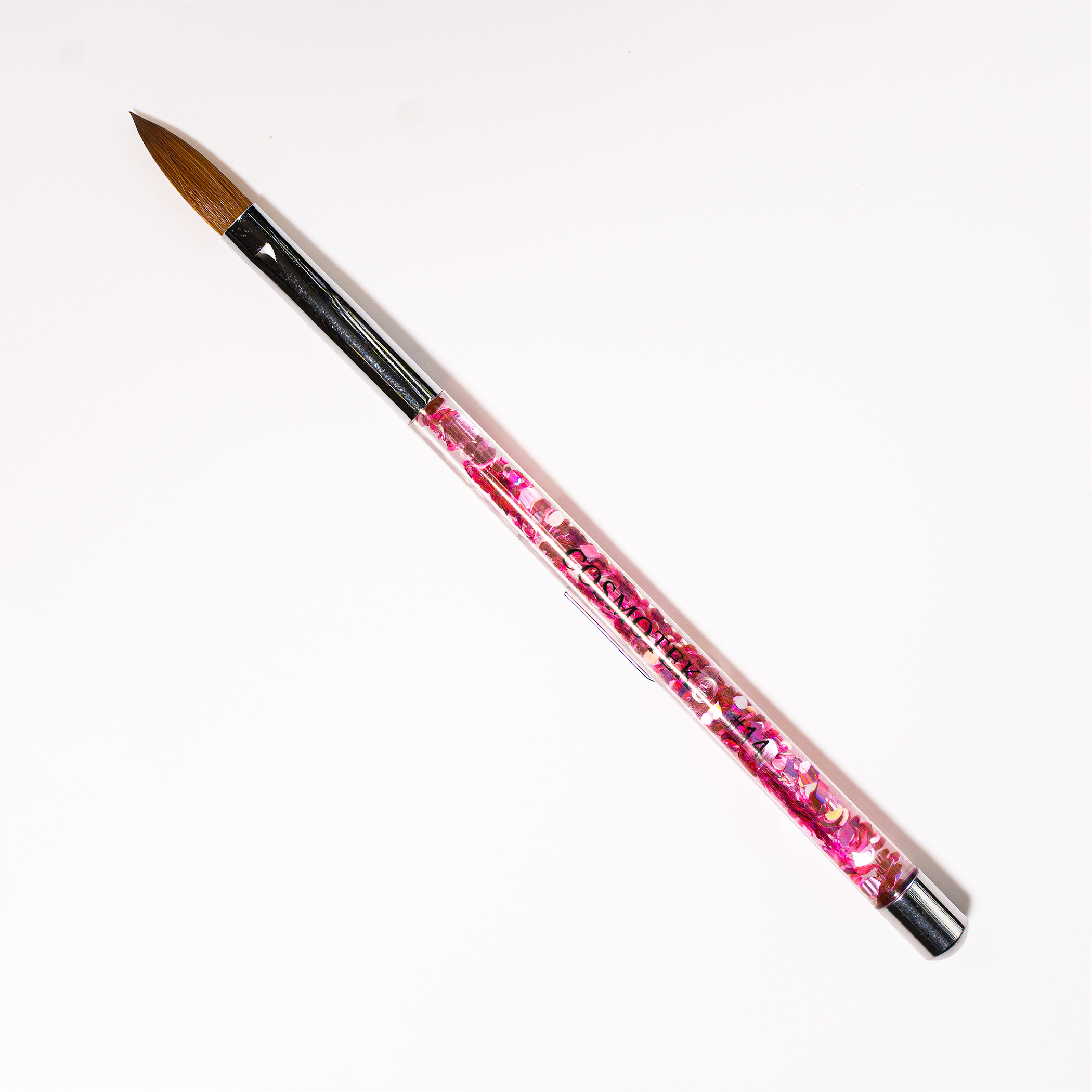 Acrylic Nail Brush Pure Kolinsky Hair Acrylic Pink Glitter Handle – Size 14