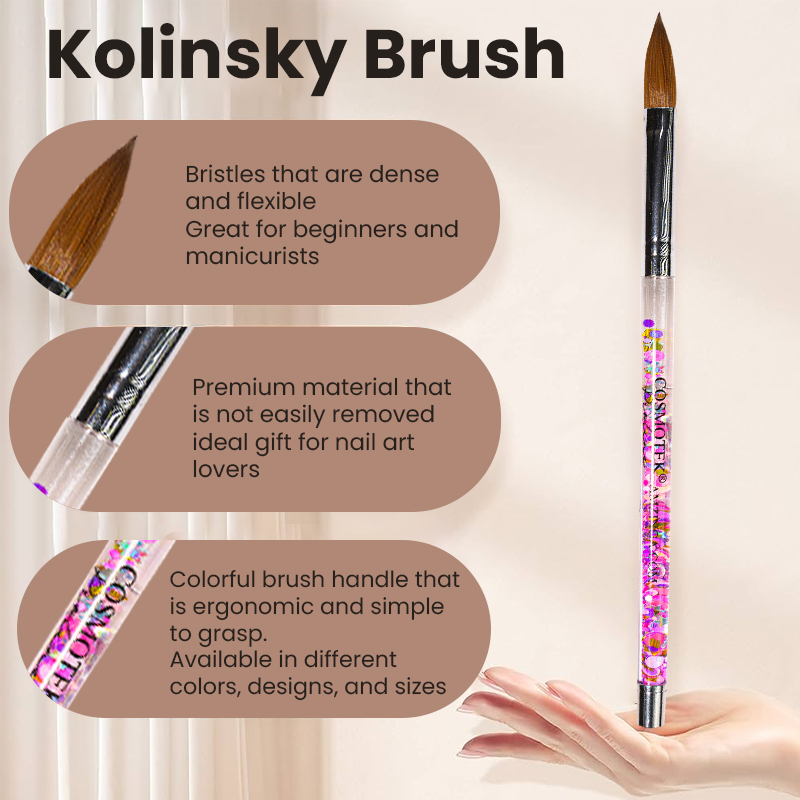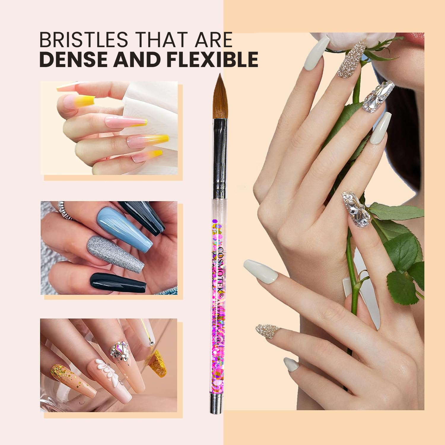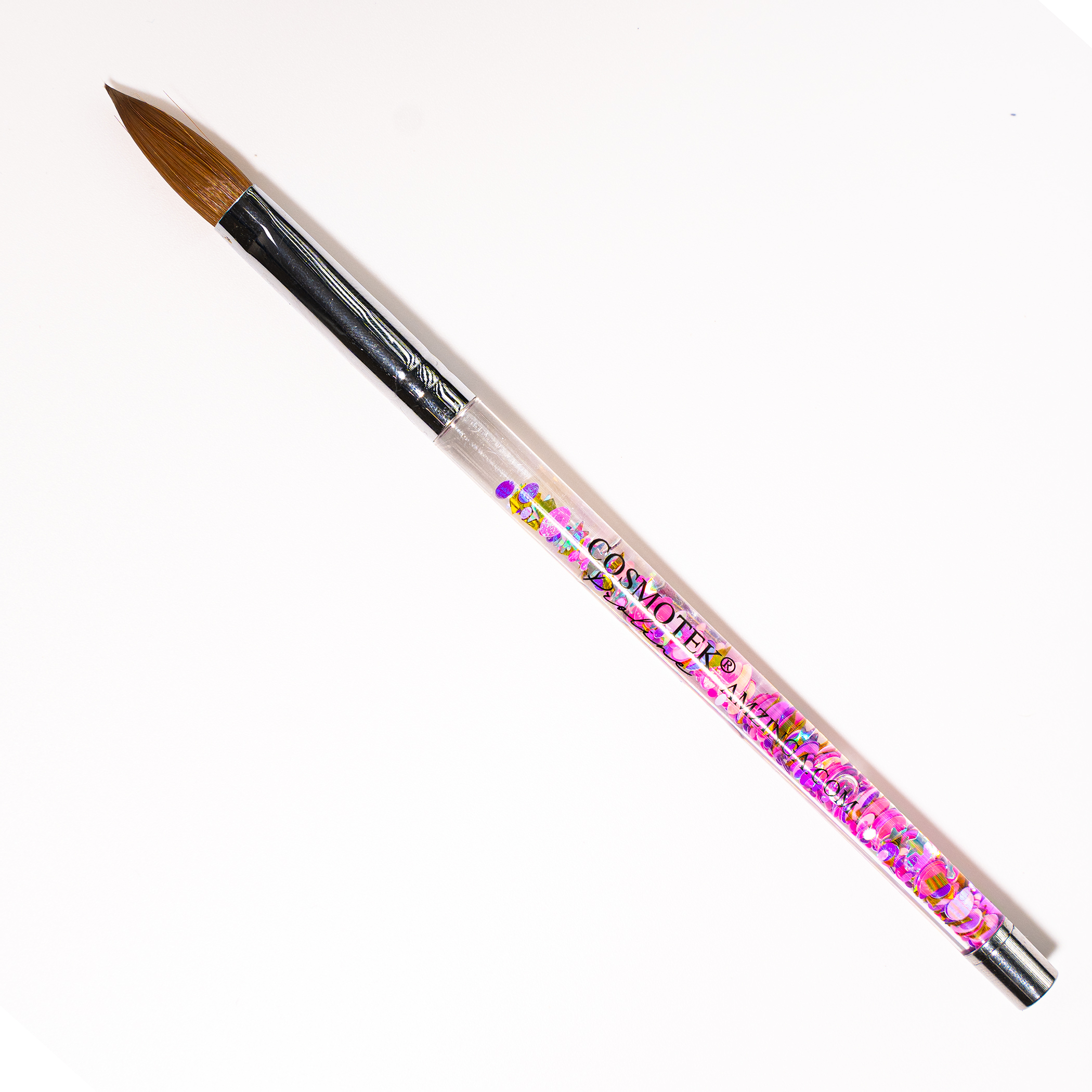 / Acrylic Nail Brush Pure Kolinsky Hair Acrylic Pink Glitter Handle – Size 18