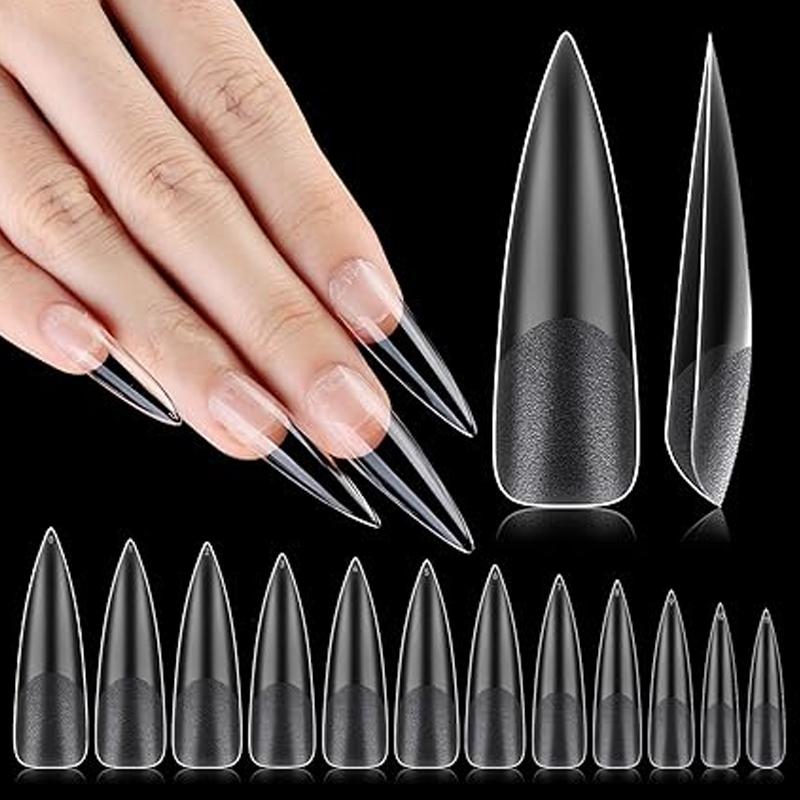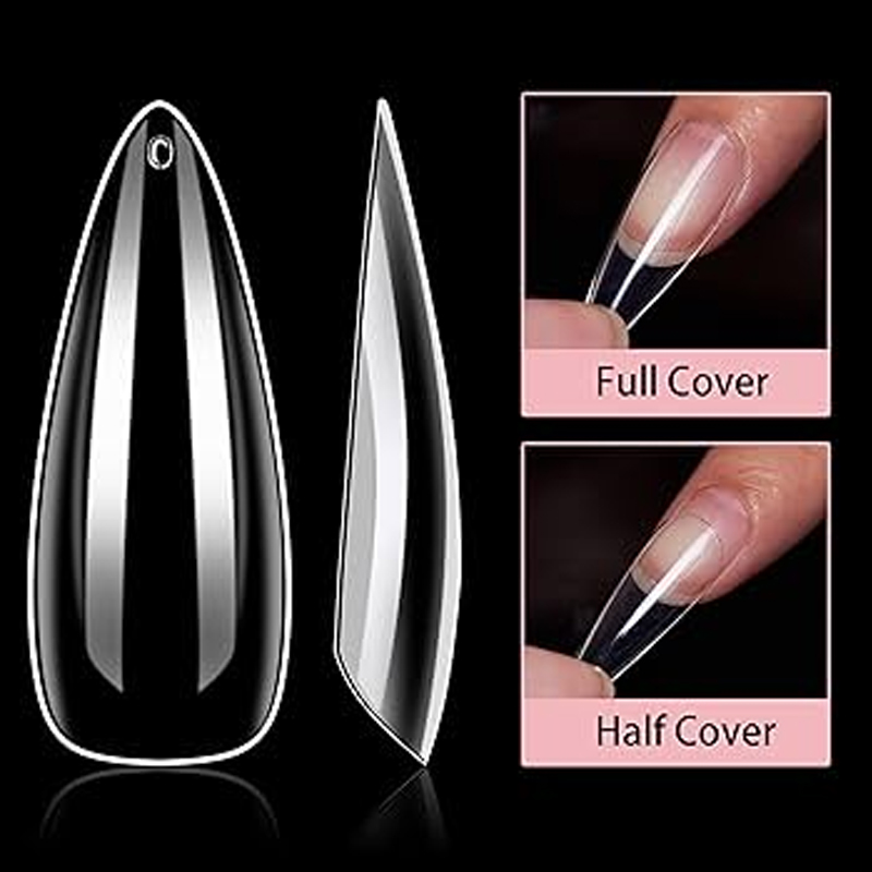 Cosmotek Medium Stiletto shape Nail Tips Pre-Filed Full Cover Soft Gel x Nail Tips 13 Sizes On Nails Tips Half Matte Clear Fake Nails for Acrylic Nails Soak Off Home