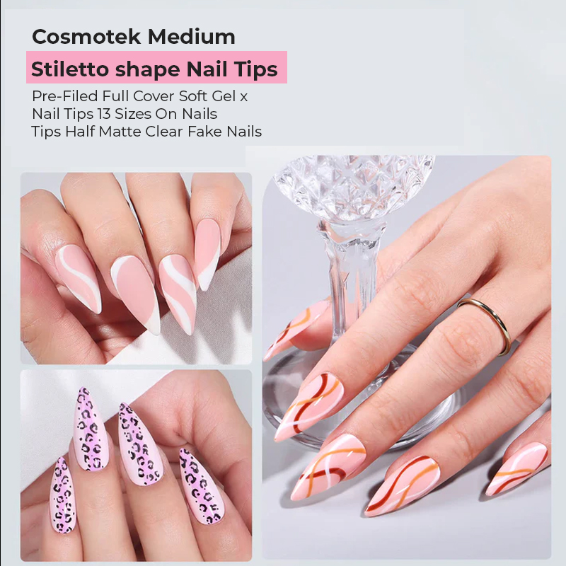 Our Cosmotek pre-filed, and full-cover soft gel tips offer the perfect canvas for your nail art creations. The nails are suitable for acrylic applications and provide a professional look with a touch of modern sophistication.