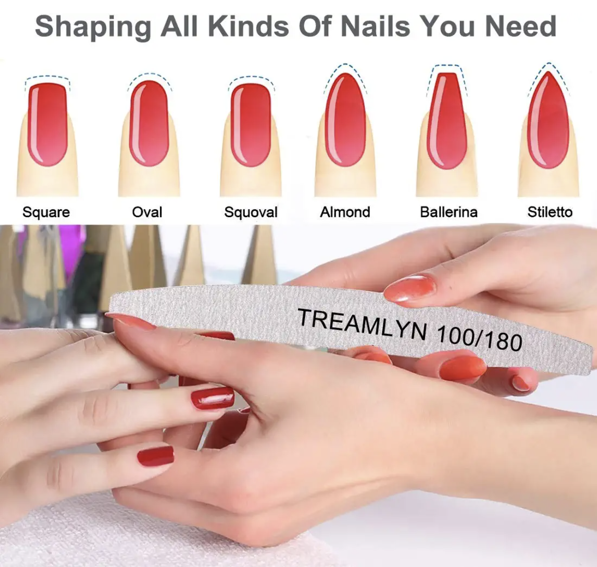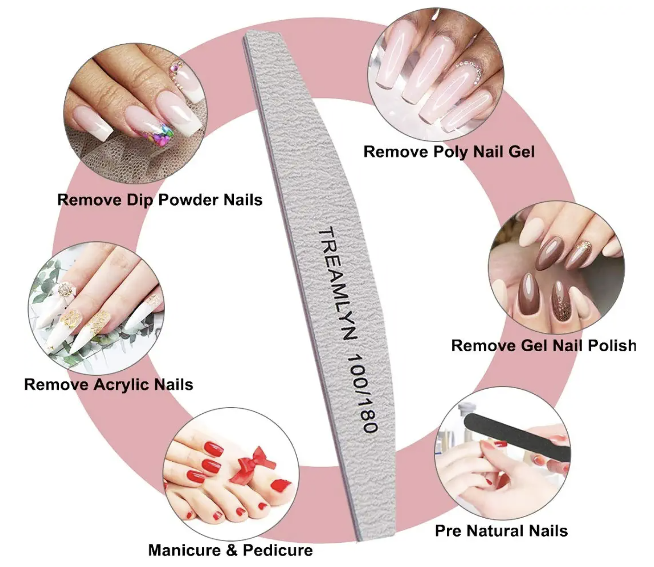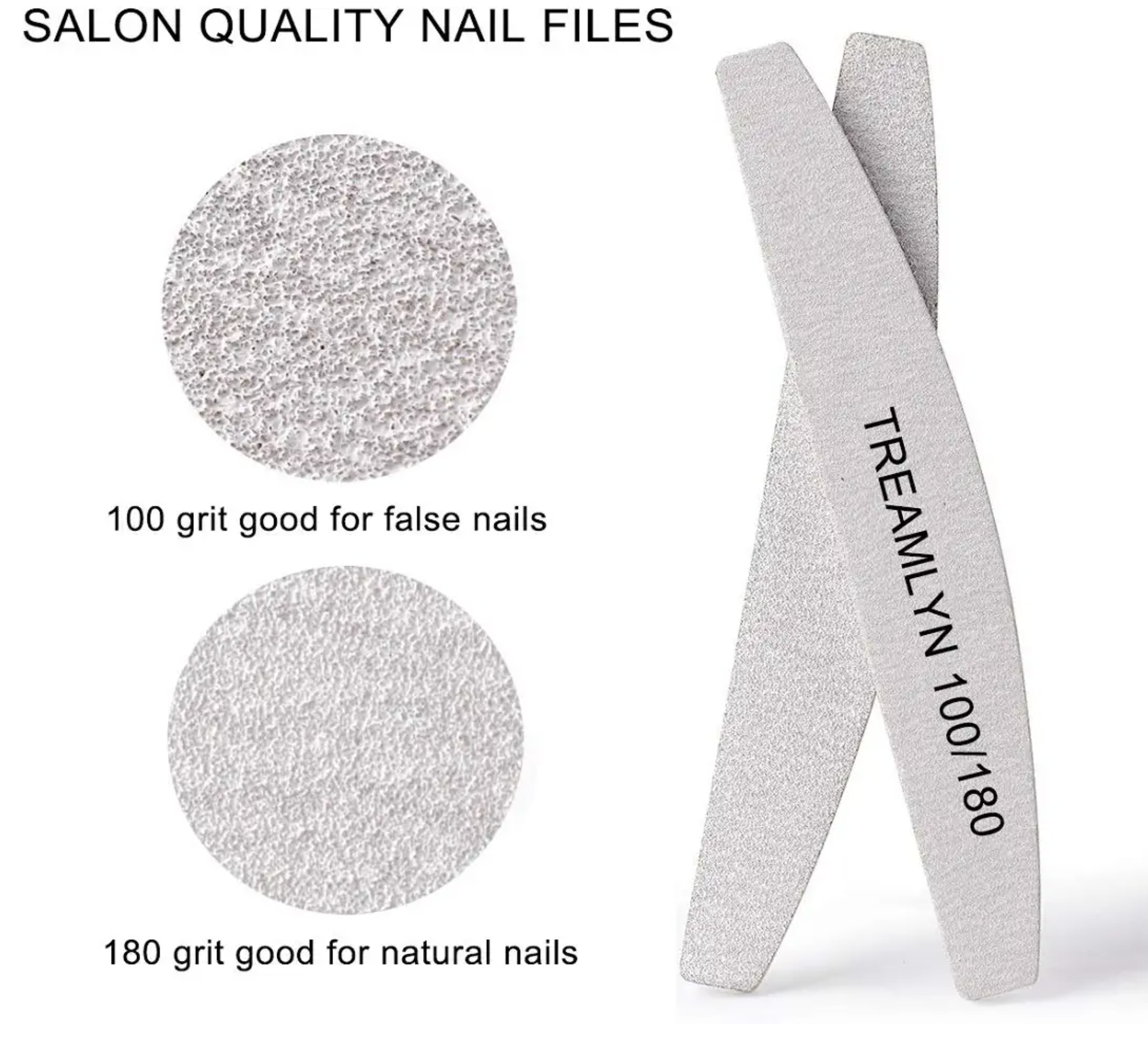 • Professional Nail Files: These 100/180 grit nail files work quickly to trim or shape the acrylic nail with your desired shape or length.