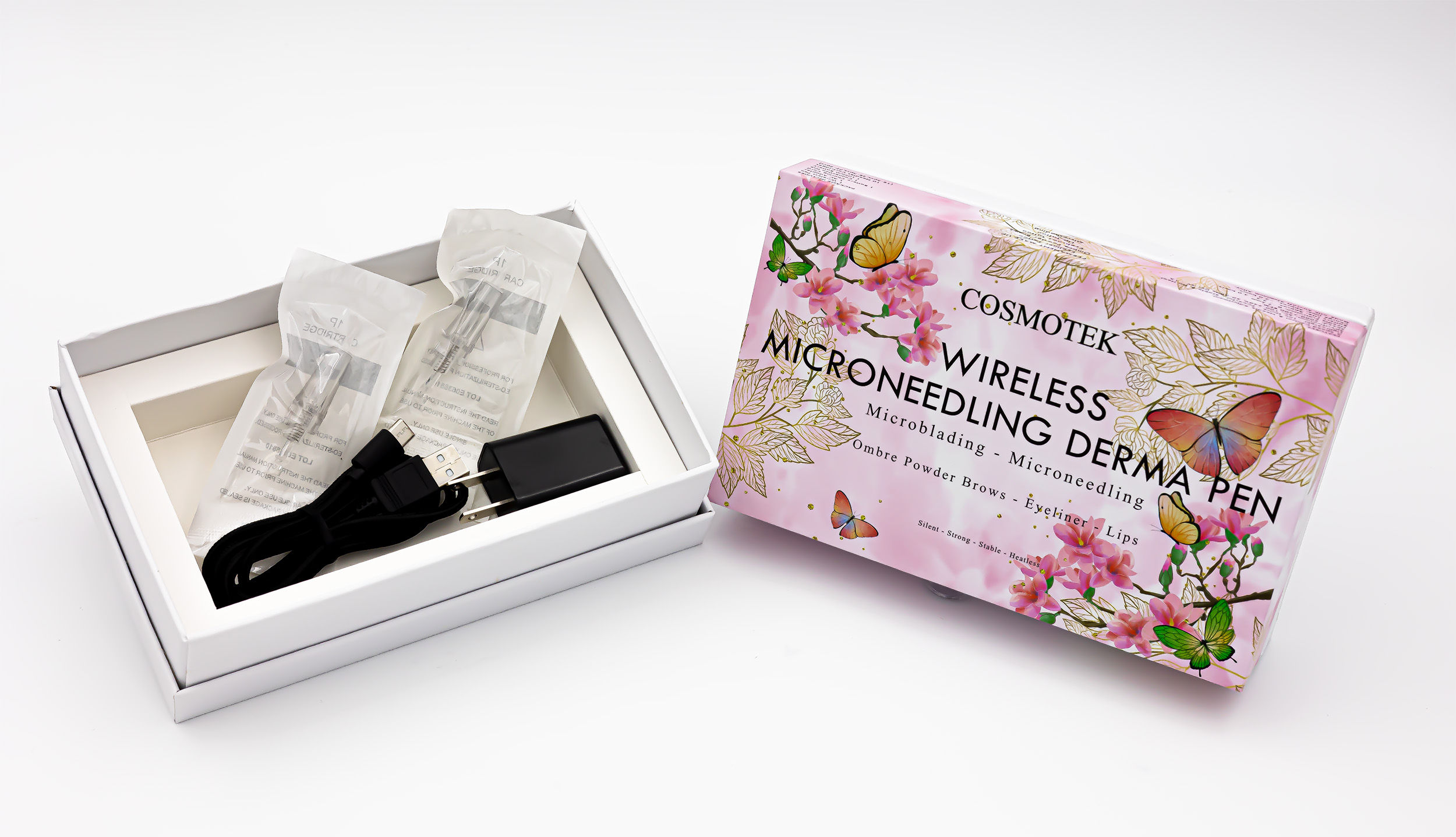• Easy to Use: may be used wirelessly (with a rechargeable built-in battery) or with the provided cable. Simply recharge the skin pen and replace the cartridge before the treatment.