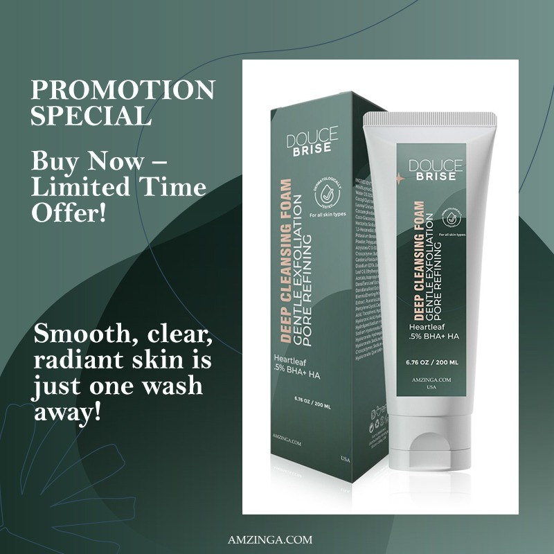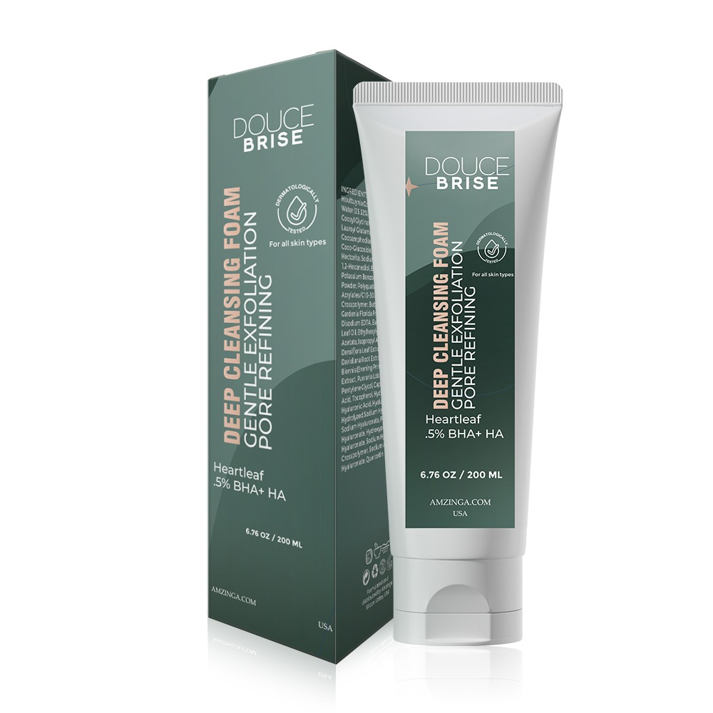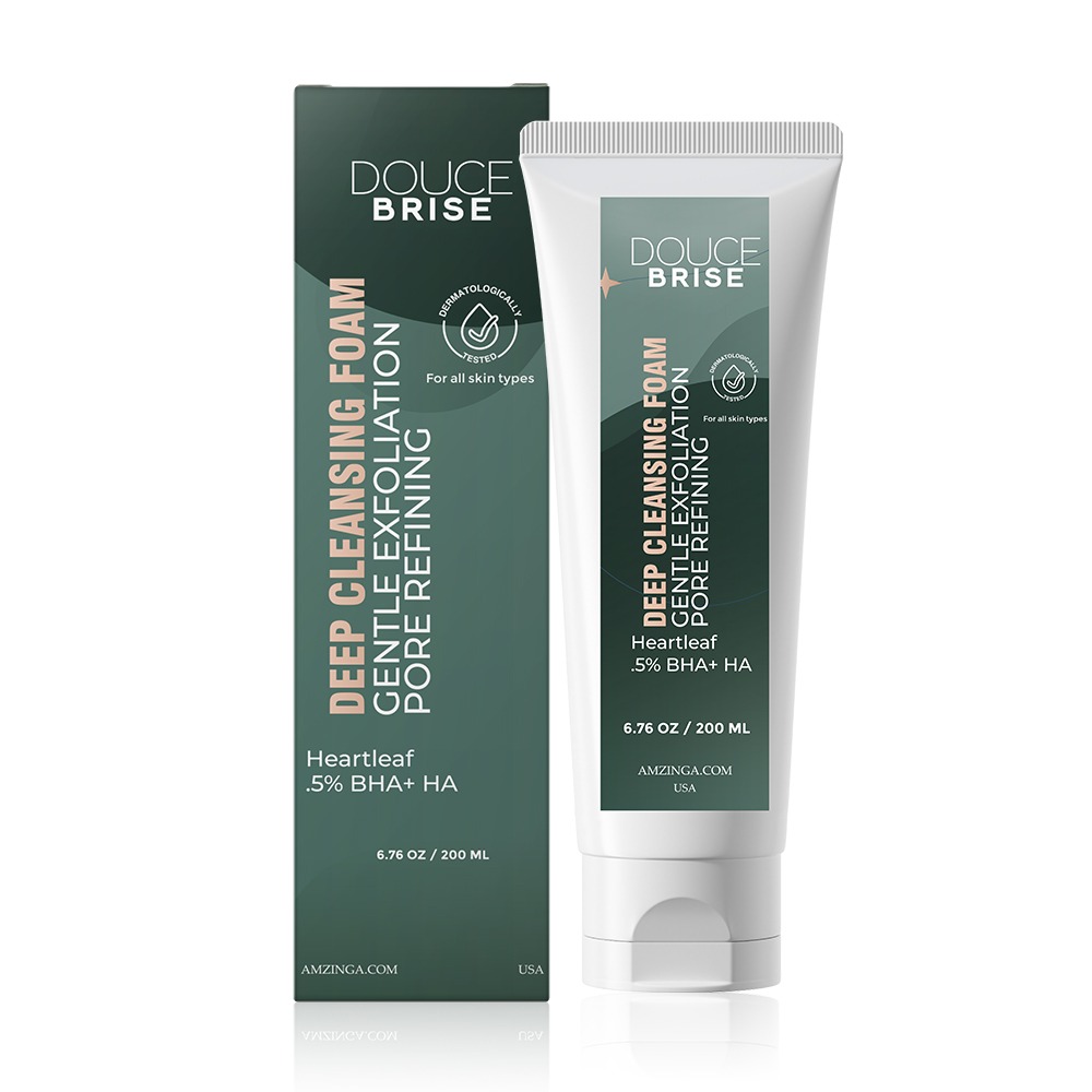 This Douce Brise Deep Cleansing Foam is a gentle yet powerful face wash designed to refine pores and maintain healthy, radiant skin. Enriched with soothing Heartleaf, exfoliating BHA, and hydrating Hyaluronic Acid, it effectively removes dirt, oil, and impurities while preventing clogged pores. The lightweight foam texture cleanses without stripping the skin, leaving it soft, refreshed, and perfectly balanced. Ideal for all skin types, this daily cleanser is your go-to step for clear and nourished skin.