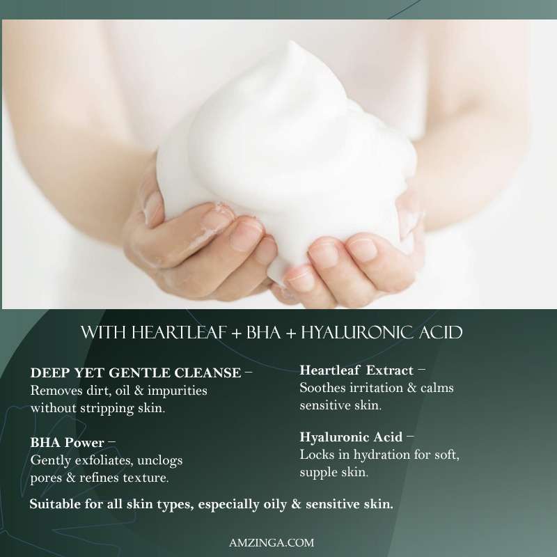 It’s like your daily cleanser BUT DEEPER. This refreshing foam wash combines heartleaf, BHA, and hyaluronic acid to gently exfoliate, refine pores, and restore skin hydration.