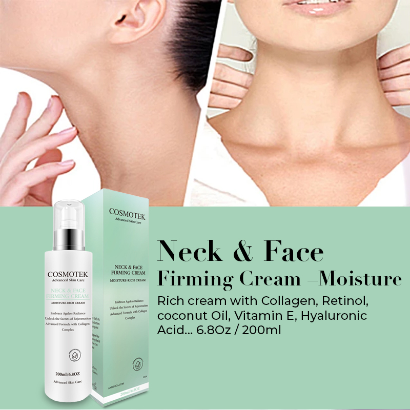 Neck & Face Firming Cream – Moisture – Rich cream with Collagen, Retinol, coconut Oil, Vitamin E, Hyaluronic Acid… 6.8Oz / 200ml
