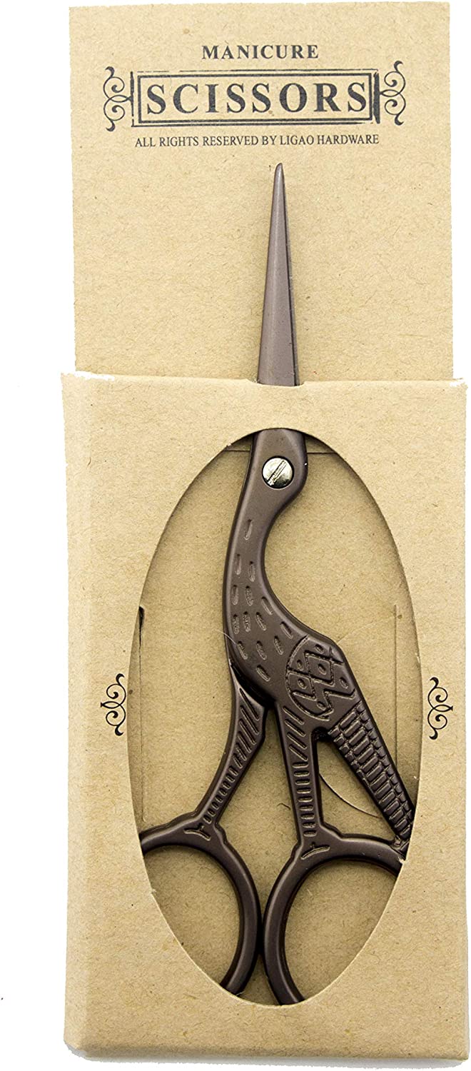 Good quality material: these antique scissors are made of quality stainless steel and alloy processing by special hardness. The elegant, gold-plated stork pattern on these embroidery scissors also makes them a lovely complement to any sewing kit and also looks like a shining little bird flying to the sky.