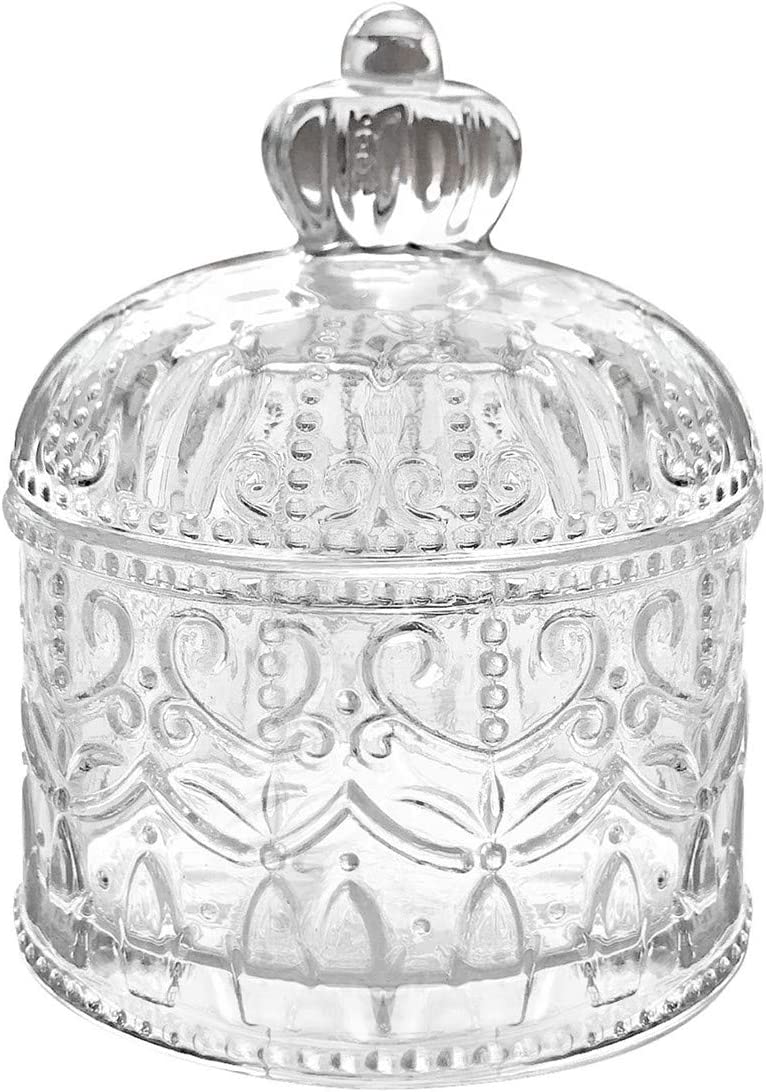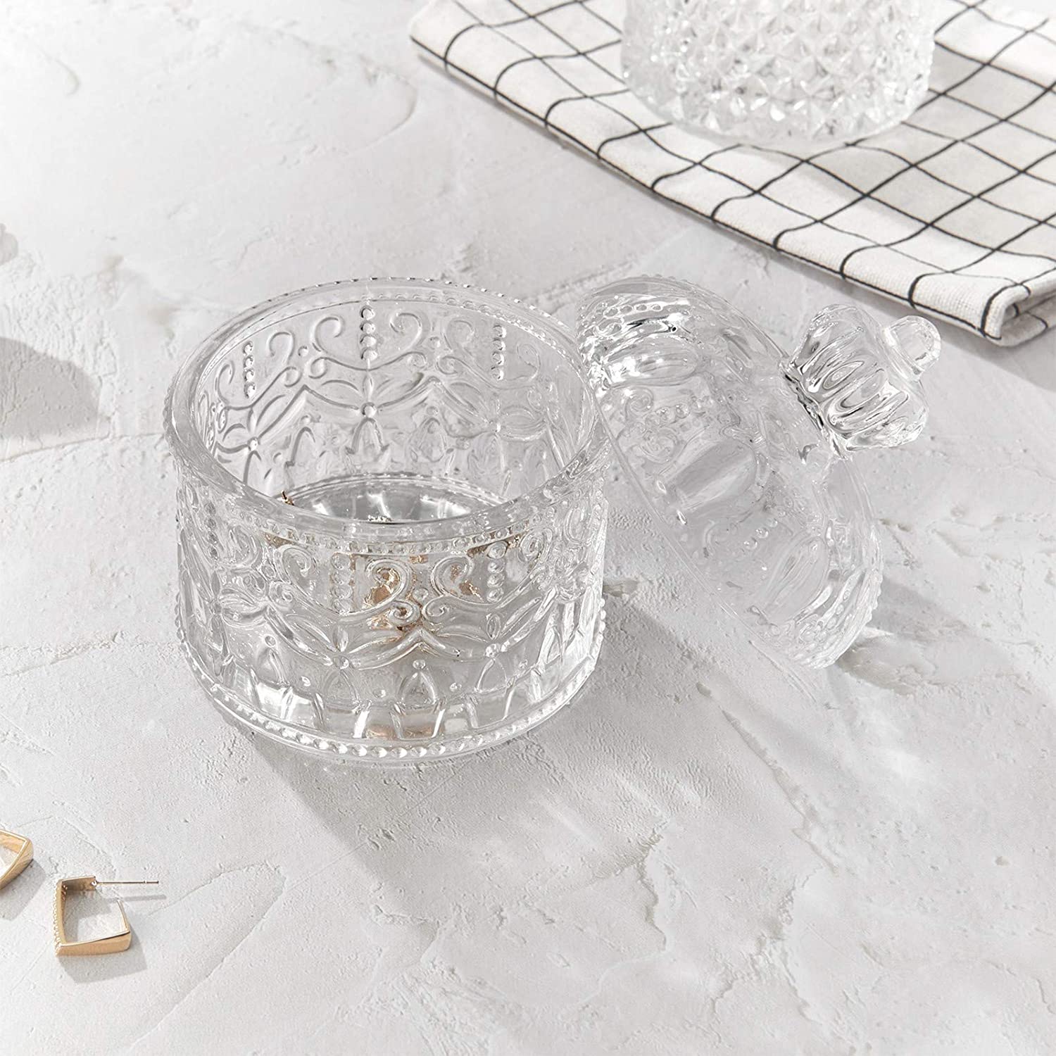 Gorgeous Embossed Patterns – The glass jar is embossed with crystal dots into its exterior and curves making it sparkle and shine elegantly. The crystal clear cover lid with crown-shaped top design makes the container more attractive for home, kitchen, and office use.